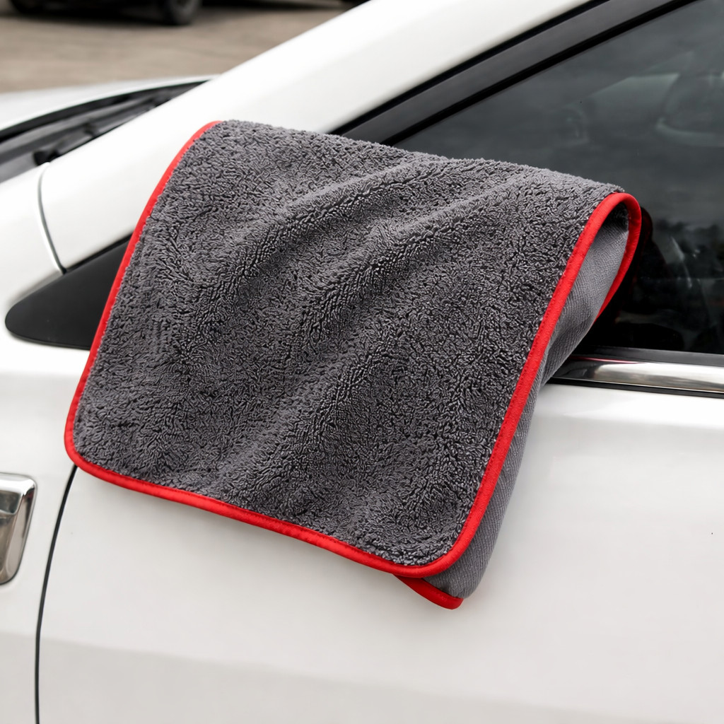 A 40×40 cm-es méret praktikus és könnyen kezelhető, akár autó, akár otthoni használat során. A strapabíró, piros szegély nemcsak esztétikus megjelenést biztosít, hanem növeli a törölköző élettartamát is.